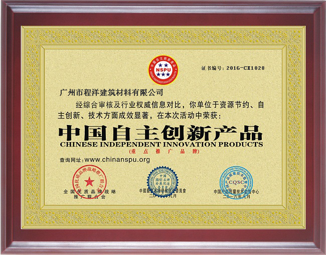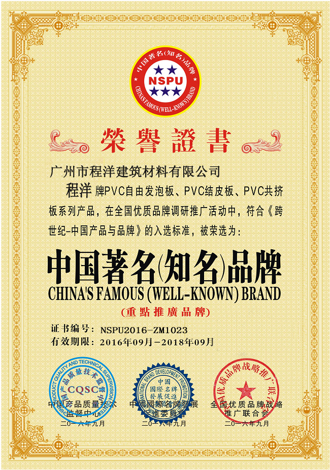 • 廣州程洋PVC板獲得著名品牌證書